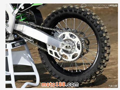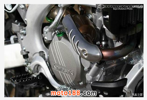 新的燃油順流噴射器匹配重新修訂的ECU,一個(gè)橋接箱的活塞和增加了慣性的磁電機(jī)轉(zhuǎn)子可以幫助車手快速的入彎。這些都提升了動(dòng)力,在剎車系統(tǒng)川崎似乎沒給改裝市場(chǎng)余地,川崎前剎原車便配備了大直徑的270mm浪花碟片(我補(bǔ)充下:crf為260mm,yzf250mm),而后減震剎車碟片直徑240mm。
