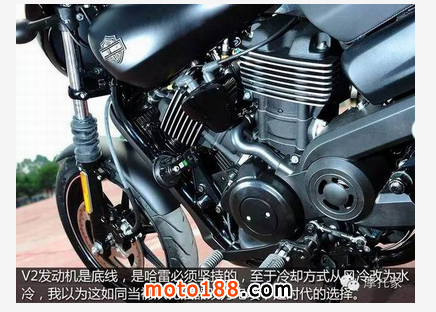 STREET 750采用排量為749c.c.的全新Revolution X水冷V型雙缸發(fā)動機,從設計之初,就是為了滿足城市間走走停停的行車需求。水冷,對于哈雷來說是一個敏感詞,哈雷的粉絲向來都容不下這些“先進”的東西,直到現(xiàn)在,他們還病態(tài)似地迷戀著“馬蹄聲”(一種由古舊哈雷化油器發(fā)動機,以低于正常怠速運轉(zhuǎn)時發(fā)出的類似馬蹄聲的韻律),并以“沒有了馬蹄聲”來作為看不起現(xiàn)代電噴發(fā)動機的依據(jù)。對的,你沒有看錯,連“電噴”這種現(xiàn)代汽車再基本不過的技術(shù),哈雷堅定粉都可以鄙視,可想而知STREET 750在他們心目中是何等的大逆不道。