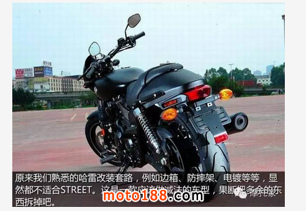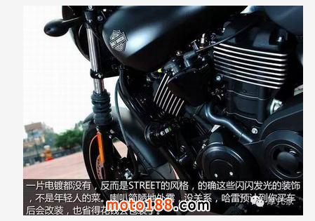 我懷疑他們造車的理念是:按照老祖宗留下的配方,用最好的材料,前輩的教誨,建造出一部摩托車,至于這部車能發(fā)出多少馬力,是不是好騎,甚至踩下剎車能不能及時停下來,都是不重要的。STREET似乎沒了這些固執(zhí),是最容易上手的一部哈雷。離合器和油門,從行程到響應,都是很好適應的,用某位資深哈雷車主的話:“和騎一部日本車沒啥區(qū)別”。