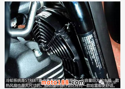 最最重要的,是全新的水冷系統(tǒng),水箱面積遠大于剛剛才追加上水冷系統(tǒng)的103立方發(fā)動機,這是個“誰用誰知道”的好處,哈雷騎士最大的噩夢,是走走停停時,騎士的胯下會被風冷發(fā)動機熱情地炙烤,“煎蛋”的痛苦,將不會出現(xiàn)在STREET 750上。