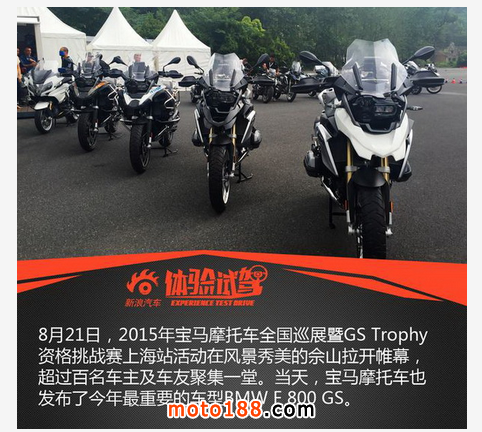 “生就非凡,縱擎人生”,8月21日,2015年寶馬摩托車全國巡展暨GS Trophy資格挑戰(zhàn)賽上海站活動在風景秀美的佘山拉開帷幕,超過百名車主及車友聚集一堂,全情體驗了寶馬摩托車帶來的純粹駕控樂趣。與此同時,BMW F 800 GS也正式登陸中國市場,并公布了12.64萬元的建議零售價。