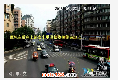 8月22日下午15時(shí)49分,在蓮花池59紅綠燈路口處,又發(fā)生了一起血的教訓(xùn)。一輛二輪摩托車在馬路上往前行駛,后座乘有一位女士手里抱著一個(gè)箱子,由于該路段車流大、人也多,二輪摩托車本身穩(wěn)定性較差,難免晃動(dòng)穿梭。此時(shí),這位女士因?yàn)楸в邢渥邮譀]扶穩(wěn),便從后座摔倒在地。事故發(fā)生時(shí),摩托車后座上的這位女士并未佩戴安全頭盔,對(duì)頭部沒有進(jìn)行任何保護(hù),在摔倒時(shí)不幸撞擊到頭部,導(dǎo)致頭部嚴(yán)重受傷無法動(dòng)彈。所幸的是,后面車輛行駛時(shí)保持了車距,并未從女士身體上碾壓過去,否則后果不堪設(shè)想,當(dāng)120急救車到達(dá)現(xiàn)場(chǎng)時(shí),地上已血流成河。