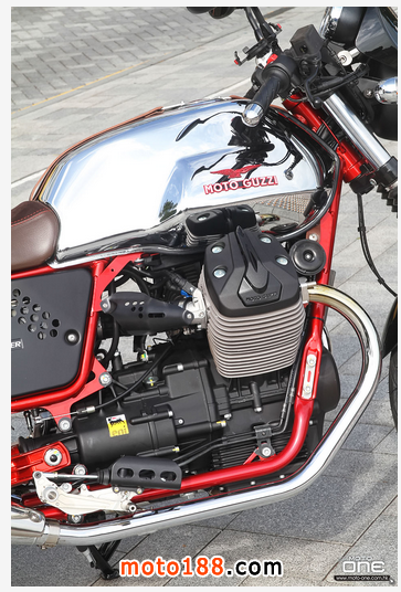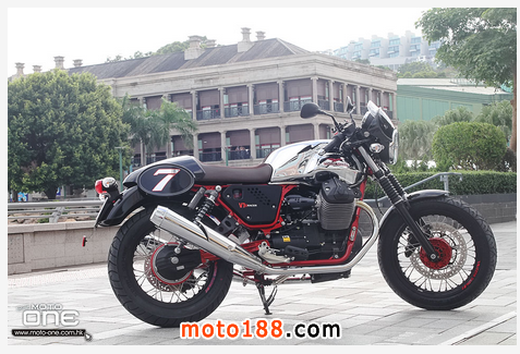 限量年產(chǎn)1000臺:每臺車架上均列明獨(dú)有限量序號,以電鍍紅色雙搖籃式車架配以黑色車身。耀目閃亮的電鍍銀色油缸上面,配置精緻烙而有MOTO GUZZ 字款的皮帶, 優(yōu)雅啡色猄皮單座位設(shè)計(jì),可調(diào)較位置的腳踏,輕量化的手把,Bitubo 可調(diào)整的避震,傳統(tǒng)鋼線轆呤,杯士軚配以傳統(tǒng)RACER 的座姿。種種不同的細(xì)節(jié)足以令V7 II RACER 成為與眾不同的車款。加上新一代六速波箱,ABS 剎車系統(tǒng)及MGCT 軌跡系統(tǒng),更加如虎潻翼。因此, V7 II RACER 是每一位電單車愛好者夢寐以求的收藏珍品。