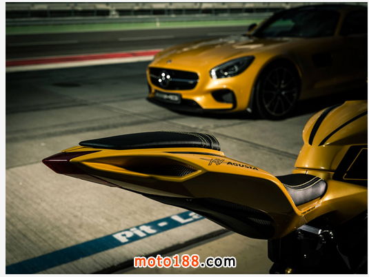 專為四輪而設(shè)的法蘭克福車展,以前跟電單車關(guān)系並不密切,不過自從Mercedes及 AUDI先后收購MV AGUSTA及DUCATI后,成為了電單車界另一個戰(zhàn)場。MV AGUSTA為了慶祝與Mercedes的合作,將會在法蘭克福車展上,展出拉上Mercedes-AMG GT花的MV AGUSTA F3 800,鮮黃色的車身配上黑色AMG標(biāo)記的配色非常搶眼。全新Mercedes-AMG GT在2014年率先曝光,并于今年發(fā)售。這款雙門跑車是繼SLS AMG后,第二款由Mercedes-AMG全面負(fù)責(zé)設(shè)計及研發(fā)的超跑,車輛分別有GT標(biāo)準(zhǔn)版及頂級GT S版本,前者馬力輸出是462hp,頂級版輸出510hp馬力,但同樣配備4.0公升V8 biturbo引擎,採用AMG SPEEDSHIFT DCT 7速雙離合器半自動波箱。