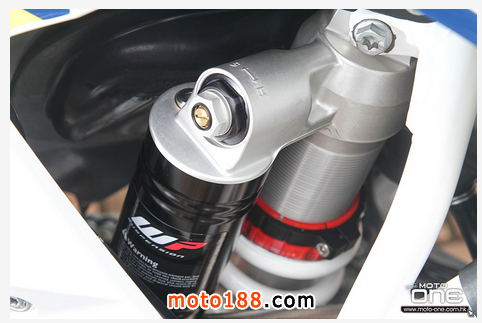 ●擁有全調(diào)校功能的WP單筒彈簧尾避震(330mm行程)。