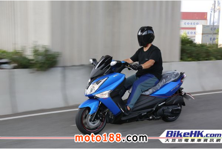 車身其余設(shè)定,都跟基本版相若。后視鏡是GTS的招牌重點之一,闊大的程度媲美房車級數(shù),可視范圍自然更廣。座鞍采用兩級式設(shè)計,后座腳踏為按壓式開關(guān)。車尾設(shè)有手挽,方便乘客抓緊。尾避震采用左右各一彈簧,提供了更穩(wěn)健的承托。車身用了雙色車花,除了藍色主調(diào)之外,車底部份之黑色為主,近前輪的位置利用線條間色,別有一番風格。車頭設(shè)有巡航燈,采用獨立開關(guān),跟死火燈的開關(guān)一同放置在匙孔的左方。儀表是清晰的四圓表設(shè)計,左至右分別是存油量、車速、轉(zhuǎn)數(shù)及水溫。車速表內(nèi)同時設(shè)有LCD顯示其他行車資訊。