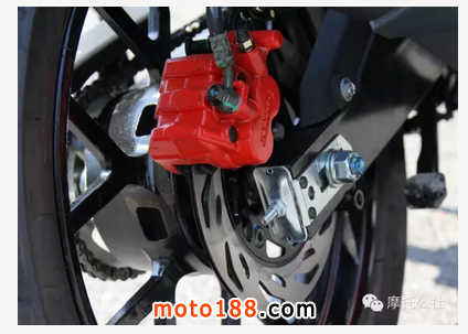 制動系統(tǒng)方面,CK1-150配備了前276mm后220mm的碟盤,且前后剎車都為單向雙活塞,這個剎車對于一輛150級別車子來說應(yīng)該足夠了。
