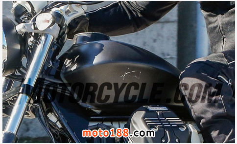 第二輛車暫且稱為V7 Eldorado,除了相似的整體造型之外,它和現(xiàn)款1400 Eldorado車型還有很多的不同之處,比如前輪胎的寬度差別較大,排氣管的長短比例也不同,此外車把部分的造型也有些差異。