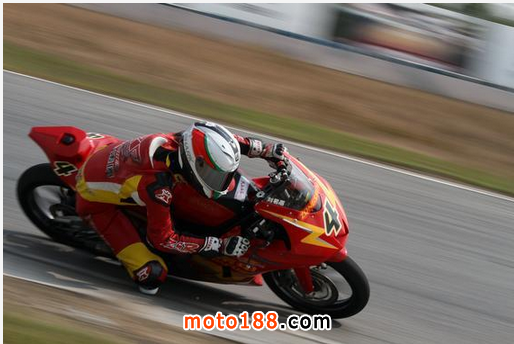 10月18日中午,全國公路摩托車錦標(biāo)賽在重頭戲廠商杯250CC組第二回合 決賽結(jié)束之后鳴金收兵。作為今年的倒數(shù)第二站比賽,全國公路賽與上海當(dāng)?shù)氐?ldquo;天馬論駕”賽車節(jié)共同舉辦,來自長江三角洲的摩托愛好者、賽車愛好者齊聚上海 天馬山賽車場,使得原本就有些炎熱的天氣更增加了不少火熱的人氣,車迷們也對目前中國最頂級的公路摩托車比賽產(chǎn)生了濃厚的興趣,特別是全國賽云集了國內(nèi)頂 尖的公路摩托車運動明星車手,也代表了中國公路摩托車運動的最高水平,這其中就包括堪稱“中國車神”的宗申車隊頭號車手——何智鋒。