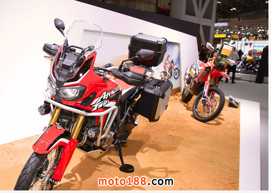 ●于2014年底舉行的意大利米蘭車展,HONDA展出了布滿泥濘CRF1000L Africa Twin原型車,旁為兩臺昔日及現(xiàn)役HONDA達(dá)卡戰(zhàn)車,Trun Adventure是形容新車是真正冒險車。
