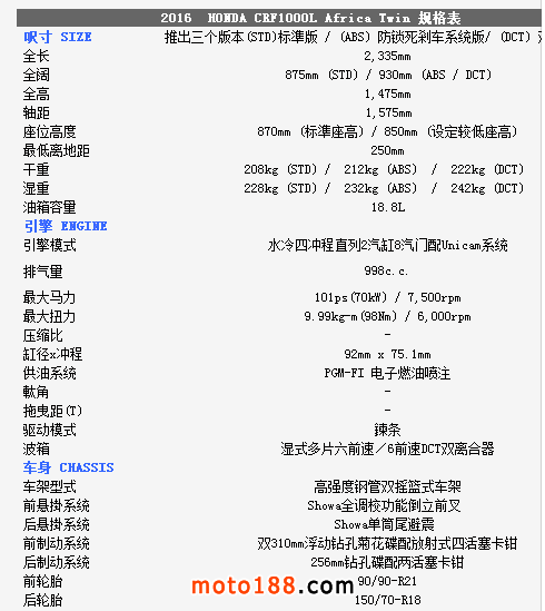 2016 HONDA CRF1000L Africa Twin歷史簡介:
