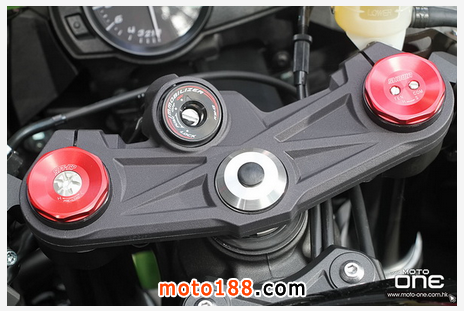 在左前叉頂是預(yù)載調(diào)校,右叉頂是壓縮及回彈的調(diào)校,根據(jù)廠方強(qiáng)調(diào)新避震的彈簧是專為蜿蜒的山路而設(shè),讓車輛在過彎及重量轉(zhuǎn)移過程中有更穩(wěn)定的行車表現(xiàn)。