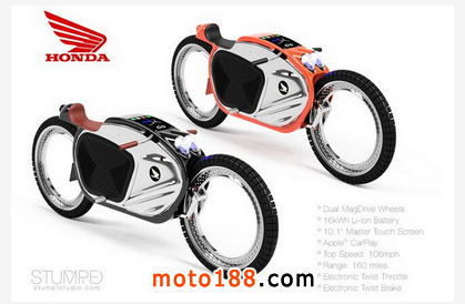 看到名稱后綴的英文字母“E”,結(jié)合這款車夸張的造型,不難想像著是一部先進(jìn)的電力驅(qū)動(dòng)摩托車。老周認(rèn)為CB 160 E最大的特色在于其兩個(gè)完全鏤空的車輪,這種近乎于科幻的設(shè)計(jì)擁有難以抗拒的魅力。