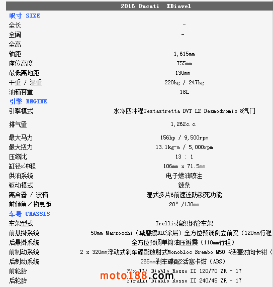 昨晚深夜,DUCATI在意大利舉行2016新車發(fā)布會,一口氣展出多款新車,而壓軸是全新Ducati XDiavel S,新車的焦點是首部采用皮帶傳動的DUCATI,其余裝備還有Desmodromic Variable Timing (DVT)搖臂式可變正時控制系統(tǒng)、多段調校的座姿、DPL彈射起步及強勁的低扭輸出等等。