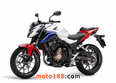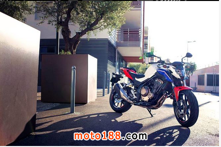 2016款CB500F在外觀上進一步提升陽剛形象,造型更具活力,經(jīng)典的紅藍白配色更襯托出車身的線條感。