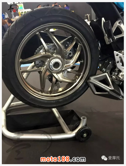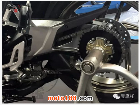 該車突破性采用了PRO-ARM(單搖臂后平叉),以及干式離合器,倒置前減,CNC鍛造輪轂,brembo卡鉗等,成為該級(jí)別最高配置的量產(chǎn)車。