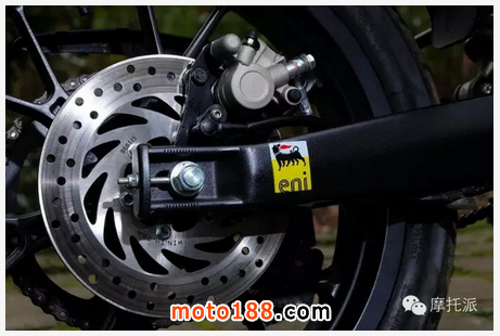 后制動(dòng):218mm單盤單卡鉗,制動(dòng)力道不錯(cuò)。剎車抱死,來(lái)點(diǎn)漂移,是不錯(cuò)的玩法。