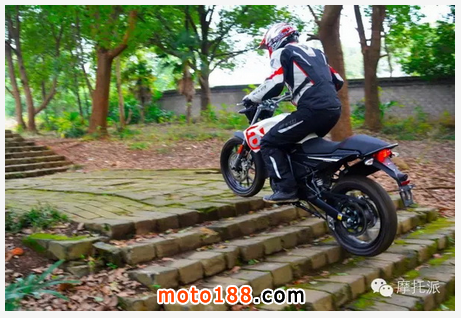 輪胎:前100/80-17,后130/70-17,正新輪胎,運(yùn)動(dòng)型輪輞。不過(guò),我倒覺得輻條輪配大齒紋胎更帶感,也更好玩。
