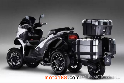 核心提示: Quadro 4 motion是一部具有創(chuàng)新意義的摩托車,加上專用拖車后便成為一款5個(gè)輪子的摩托車。 它既擁有摩托車的便捷性,也擁有