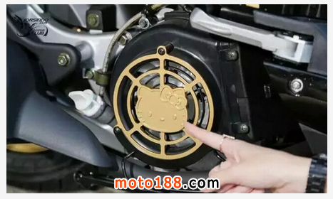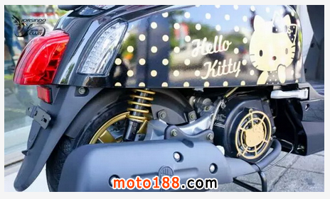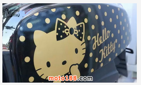 車身側(cè)邊以黑底圓點彩繪搭配大面積Kitty圖像,這要是騎在路上眾多妹妹都會多看一眼。