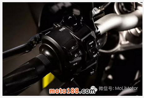 除了動(dòng)力上的調(diào)整外,電控系統(tǒng)也因?yàn)樾枨蟮牟煌cR1 有所不同,除了最基本的電子油門YCC-T 與D-Mode動(dòng)力模式外,具有與R1 不同的三段式TCS,Level 1 為介入最少的運(yùn)動(dòng)模式,Level3 則是適合雨天惡路使用,介入最多的模式,TCS 會(huì)透過控制節(jié)流閥、點(diǎn)火與供油,在后輪打滑時(shí)介入,當(dāng)然也可以關(guān)閉。除此之外,MT-10 新增加了巡航控制,只要檔位在4、5、6檔,并且時(shí)速在50-180km/h 之間,開啟左把手的巡航開關(guān),不論上下坡車輛都會(huì)維持同樣的速度,同時(shí)能透過開關(guān)增減時(shí)速,每次為兩公里。一但扭動(dòng)油門或操作離合器、煞車,則會(huì)自動(dòng)取消。另外也設(shè)有回復(fù)鍵,可以一鍵以上次巡航速度巡航。