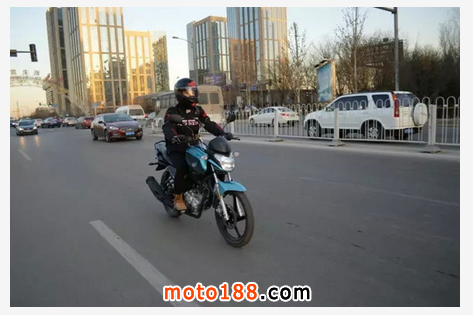 騎上車第一個動作就是以往最難的倒車,首先感覺130kg的車重真的很輕,即使不能雙腳掌全面著地,但倒車調頭仍然毫不費力。道路駕駛中車身靈活好操控,低扭比較大,怠速很高,檔位清晰,尤其是二檔降空擋時很好找一踩就到。雖然沒有ABS,但在急剎輪胎抱死時,由于車輕易操控,所以感覺仍可以在控制之中,這種安全感還是第一次有。