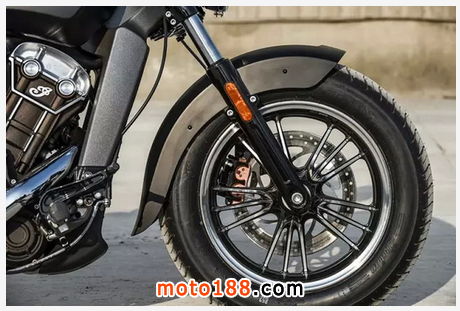 帶有鍍鉻飾條的黑色前燈重溫了印第安Scout前燈的經(jīng)典造型,與其它黑色部件相得益彰。