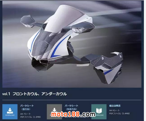 為方便大家下載及分門別類,廠方把車身分為5個單元,分別是包圍、轉(zhuǎn)向系統(tǒng)及油缸引擎、車架及前后輪,每個單元分別有彩色版、黑白版及折紙技巧說明書。愿意嘗試的小伙伴就拿走吧,雅馬哈君等你的好消息!