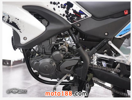 250毫升的排氣量配以國內(nèi)唯一使用雙凸輪軸、四氣門、水冷單缸往復式6擋鏈條傳動的電噴發(fā)動機,對于車重只有140公斤的它來說,動力完全可以滿足大部分的用戶需求。