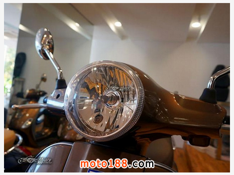 Vespa經(jīng)典的車頭造型很有韻味,大燈是傳統(tǒng)的鹵素光源。