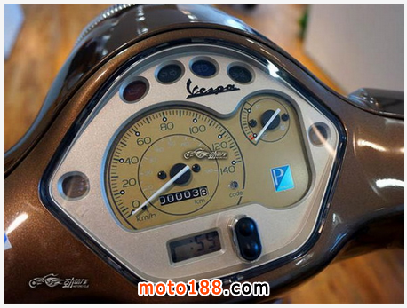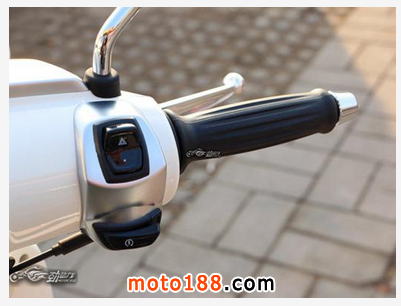 LX150的燈光無法全部關閉,但是可以在小燈和大燈之間進行切換。把套也顯得挺精致,上面還有Vespa的Logo。