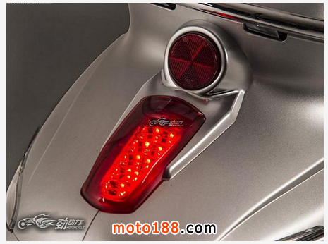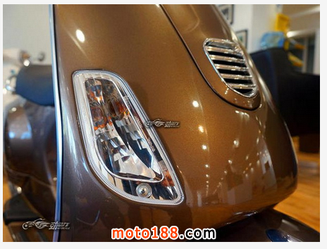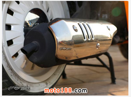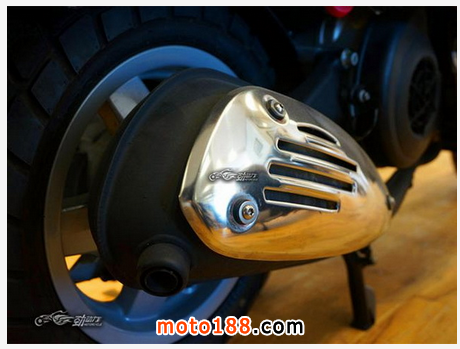 排氣管尾段的造型也是Vespa的賣萌風格,上面的電鍍防燙罩也是為了配合古典精致的設計。