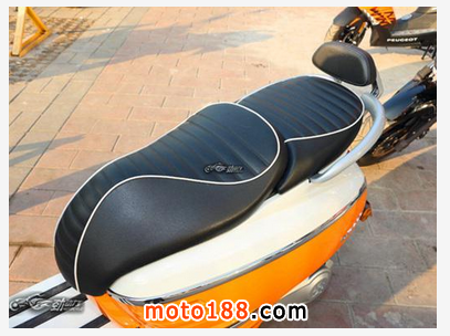 “姜戈”的復古運動范兒車座顯得更加精致,面積還要大于LX150,讓車手和后座乘客都擁有不錯的乘坐空間,后座上的小靠背是標致原廠選裝件。