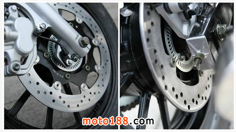 可以看到,制動系統(tǒng)配備了高端安全的ABS防抱死系統(tǒng)。這點在國產(chǎn)車中屬于少數(shù),在250cc級車系中更屬首例。