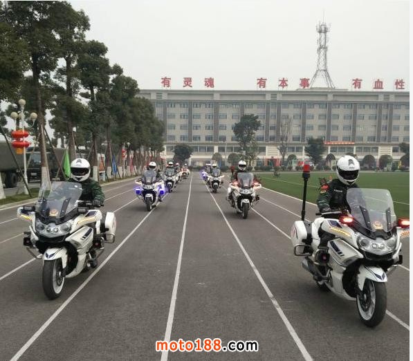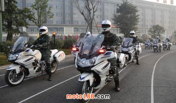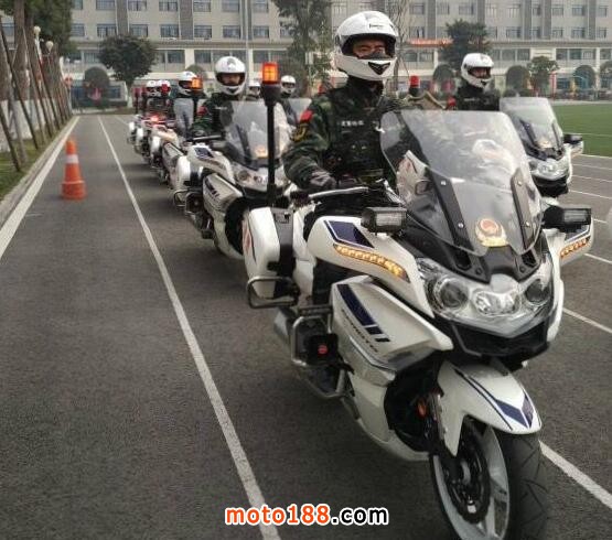 成都武警摩托車巡邏分隊與北京國賓護衛(wèi)隊摩托車規(guī)格一樣,是國內第一款裝有ABS防抱死制動系統和全車LED燈的摩托,最高車速達170公里/小時,可以緊急停車并完成180 的轉彎。摩托車擁有650CC排量,在零下20 低溫環(huán)境下能一次性發(fā)動,而一般摩托車只能保證在零下10 下發(fā)動。車擋風鏡還是電動升降調節(jié)的,并具有位置記憶功能。車上有多頻無線、多線通訊,頭盔里還有內置藍牙,可以與機載電臺實時通訊,通訊接收距離不小于30公里。