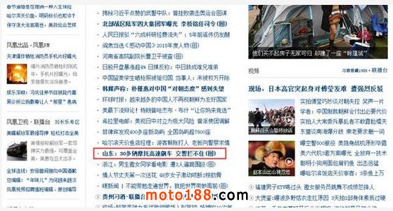 核心提示:春節(jié)上班首日,摩托高速飆車又上新聞。鳳凰網(wǎng)今日在首頁就重點推送了一篇《山東:30多輛摩托高速飆車 交警攔不住》的新聞。以下
