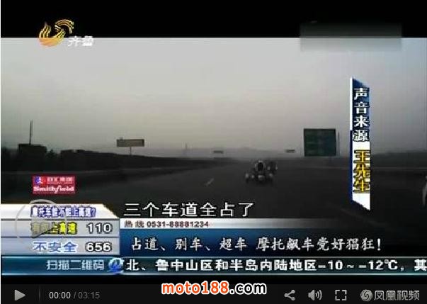 “基本上三個車道都占了,別了我好幾下,并排著走不讓我們超車,相當(dāng)危險。”王先生說,除了占道、別車,飆到興起,這些摩托車還超起了四輪車,旁邊的車輛見狀只好減速避讓。