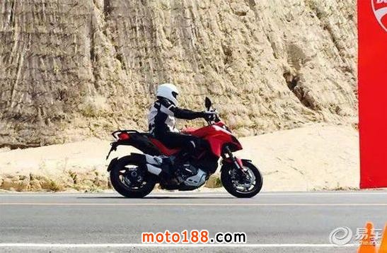 切換致Sport運動模式,感覺排氣聲浪有所激進(jìn),油門響應(yīng)更加直接敏感,加速體驗變得暢快許多。毫不夸張地講,全新Multistrada(攬途) 1200 S在使用Sport模式時,騎行體驗更像是一部運動型街車。配合DVT系統(tǒng)的優(yōu)勢,即使在時速很低時,車輛也不會發(fā)生頓挫現(xiàn)象。起步如果油門開度稍大,會有抬頭的跡象,但由于此車配備了DWC防抬頭安全騎行裝置,所以無論怎樣大給油門,也不用擔(dān)心會有抬頭的現(xiàn)象發(fā)生。這種方式雖然保障了騎士安全,但對于喜歡玩帥??岬尿T士來講,他們寧可完全關(guān)閉安全系統(tǒng)才好玩。