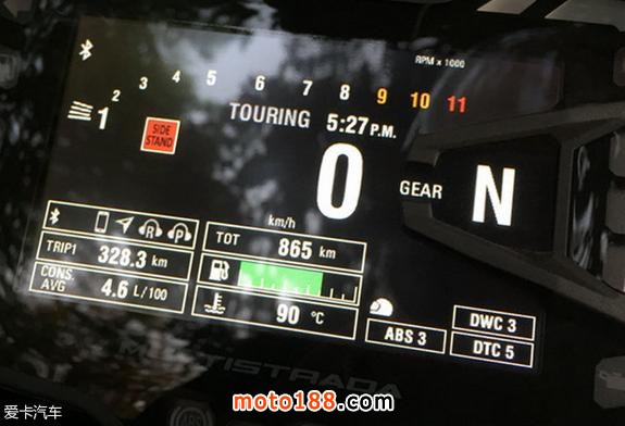 我們試駕MTS 1200S的里程總共達到了328公里。里面包含城市道路、郊區(qū)道路及山路,基本涵蓋了日常騎行會碰到的路況。在說騎行體驗之前,必須要贊一下MTS的坐姿。一天下來,一點也不覺得疲勞。尤其是腰部和膝蓋。這只能歸功于杜卡迪人機工程設計到位。不過,也有不習慣的地方,例如電門開關鍵和發(fā)動機啟動按鈕離得太近,我這一路經(jīng)常會按錯:當我想啟動發(fā)動機的時候,卻發(fā)現(xiàn)關閉了電門。