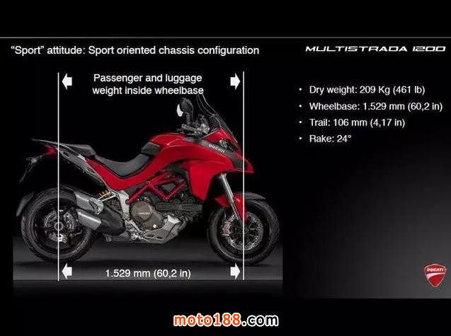 在底盤方面,新的MTS 1200的軸距為1529毫米,相當(dāng)緊湊。前后輪重量分配比為50:50,乘員和邊箱等負載都在軸距之內(nèi),左右最大傾角達到47度,離地間隙180毫米、車把轉(zhuǎn)動范圍達到80度。另外,新MTS 1200的干重只有209公斤,輕便靈活。