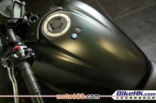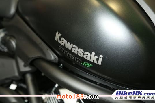 Kawasaki Vulcan S這臺(tái)直二美巡深得一班年輕用家歡迎。喜愛(ài)它的輕巧、易操控,但同時(shí)亦有美巡的舒適以及配合的扭力。2016年新色的Vulcan S變得更為深沉,去年即使以黑色為主,但仍配上一點(diǎn)灰色點(diǎn)綴。今年的新色將黑色發(fā)揮至極,車(chē)輪沒(méi)有綠色輪圈貼,頭燈罩上的灰色部份也改用上光面黑色。(頭燈上的光面黑是不帶綠色線(xiàn)的,那只是室內(nèi)燈光的倒影而已。)水箱側(cè)跟避震下的位置也變?yōu)楣饷婧?。全?chē)唯一的色彩就只有Vulcan S中的綠色「S」。