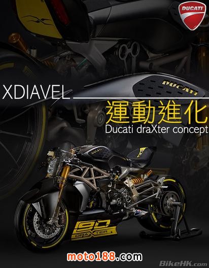 核心提示: Ducati于一月份舉行的Motor Bike Expo of Verona中展示了一臺(tái)全新的概念車,取名「draXter」。當(dāng)中的X,其實(shí)就是源自XDiavel