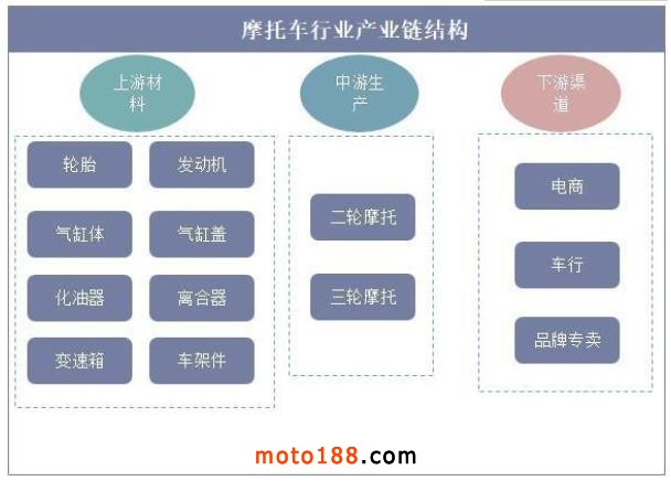 1885年,德國人巴特列布·戴姆勒發(fā)明了世界上最早的內(nèi)燃機摩托車,1894年,德國的希爾德布朗-沃爾夫穆勒公司成為首個量產(chǎn)摩托車的廠家,并第一次將之稱為摩托;1896年,??松柟鹃_始生產(chǎn)摩托車;1898年奧林特-阿斯特公司開始生產(chǎn)摩托車……由此而始,摩托車開始進入全面量產(chǎn)時期。時至今日,現(xiàn)代摩托車已經(jīng)發(fā)展得高度成熟,從車型方面,跑車、街車、巡航車、旅行車、探險車、越野車、踏板車,各種類型爭奇斗艷,從摩托車行業(yè)產(chǎn)業(yè)鏈來看,其上游主要是輪胎、發(fā)動機、離合器、變速器等原材料,下游銷售渠道主要是電商、車行、品牌專賣等。