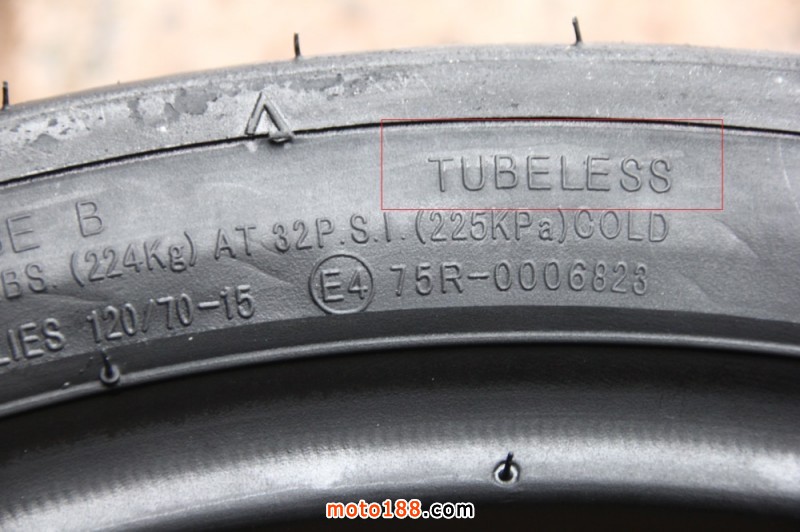 TUBELESS;表示這款輪胎沒有內(nèi)胎,俗稱真空胎。