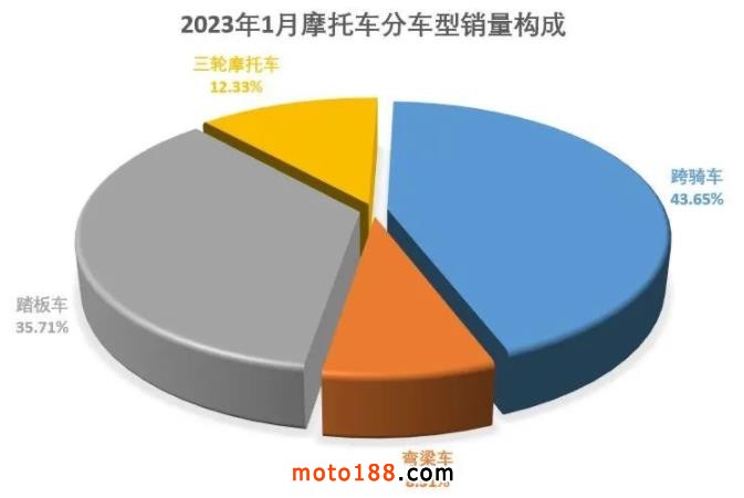 1月,從車型明細(xì)來看,三大車型中,跨騎車產(chǎn)銷41.2萬輛和45.42萬輛,產(chǎn)銷量環(huán)比下降32.21%和27.93%,同比下降42.52%和37.11%;踏板車產(chǎn)銷35.31萬輛和37.15萬輛(約50%為電動(dòng)踏板車),產(chǎn)銷量環(huán)比下降51.34%和48.52%,同比下降31.19%和30.21%;彎梁車產(chǎn)銷8.55萬輛和8.65萬輛,產(chǎn)銷量環(huán)比下降30.46%和34.15%,同比下降27.91%和34.15%。