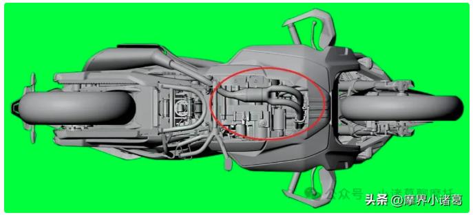 從專利仰視圖上我們可看出,排管出口是兩個合一,說明此車就是雙缸。
