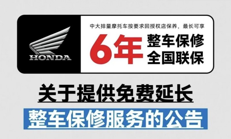 除了即將普及的電控配置以外,在2026年國產(chǎn)摩托車市場還將迎來“卷”質(zhì)保服務(wù)的現(xiàn)象。早在今年9月份HONDA就公布了中大排量摩托車6年不限里程整車保修服務(wù),只要是2025年1月1日起在授權(quán)經(jīng)銷商購買的中大排量摩托車都可以享受“6年不限里程”的整備保修服務(wù),這對于進口品牌在國內(nèi)的售后服務(wù)是很大的一次進化。