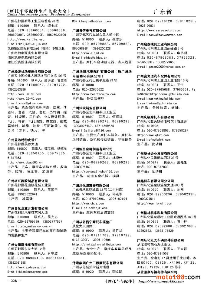 2010版摩托車配件生產(chǎn)企業(yè)大全