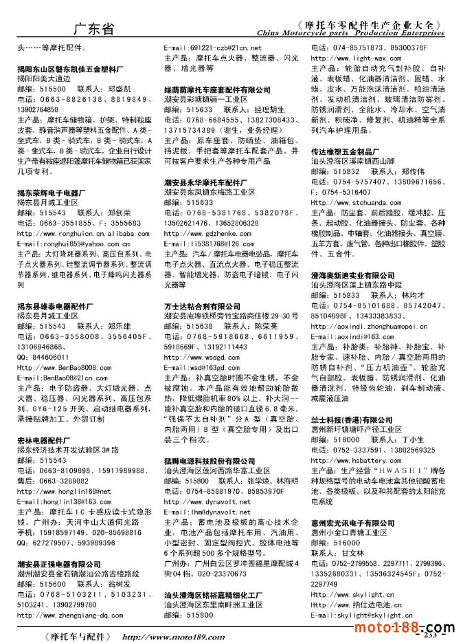 2010版摩托車配件生產(chǎn)企業(yè)大全