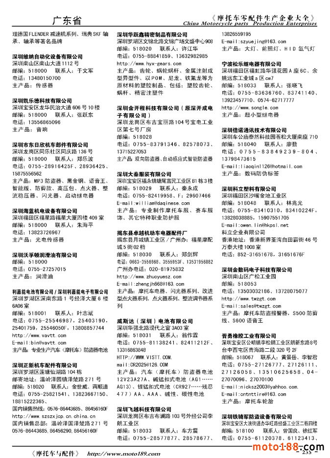 2010版摩托車配件生產(chǎn)企業(yè)大全